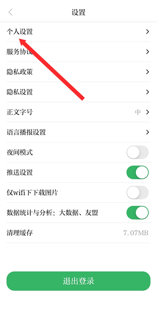 3、在設(shè)置的頁面,點擊個人設(shè)置,進入個人資料的頁面。