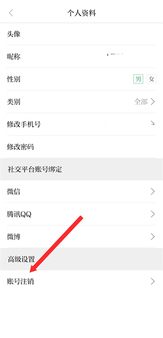 4、在個人資料的頁面,點擊賬號注銷,按照提示完成賬號注銷操作。