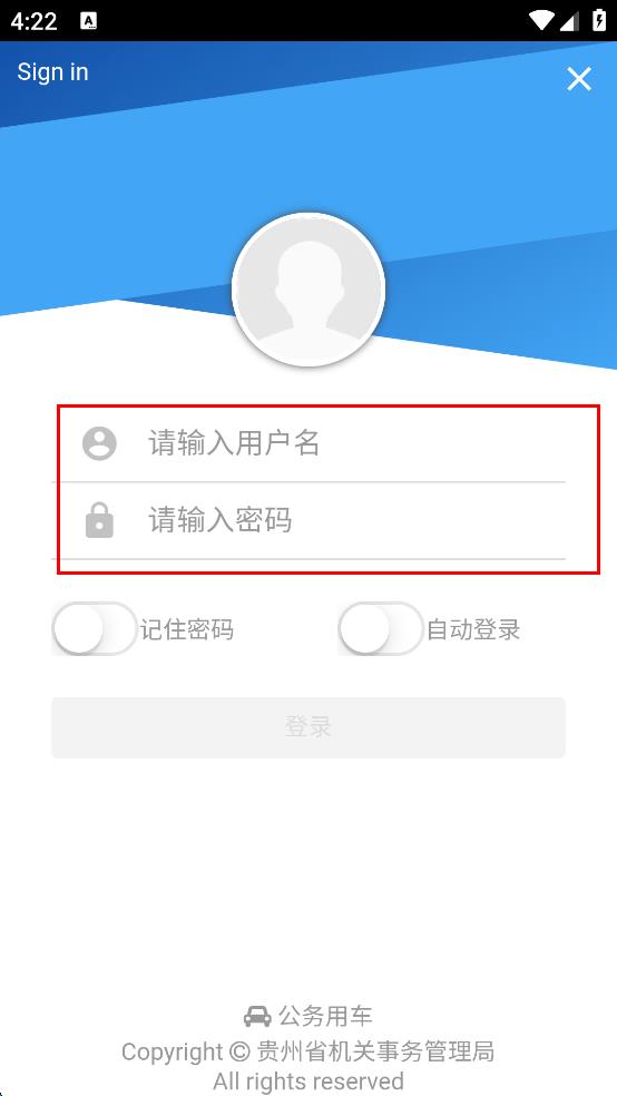 4、用戶名和密碼都輸入完畢后,點擊“登錄”按鈕,即可完成公務用車APP的登錄操作。