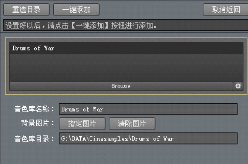 自定義音色庫與標準音色庫的添加分開,標準音色庫可直接選目錄直接添加,無需多余步驟。