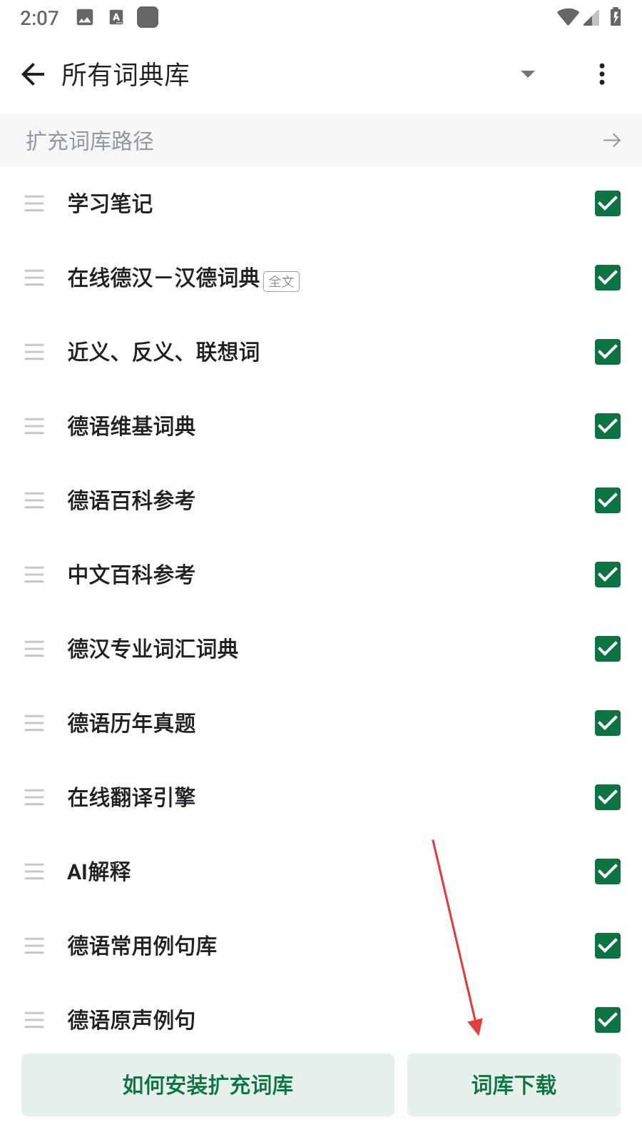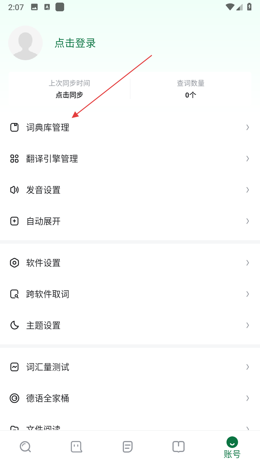 1、打開德語助手APP,在頁面中找到并點擊詞典庫管理選項,進(jìn)入詞典庫管理頁面。