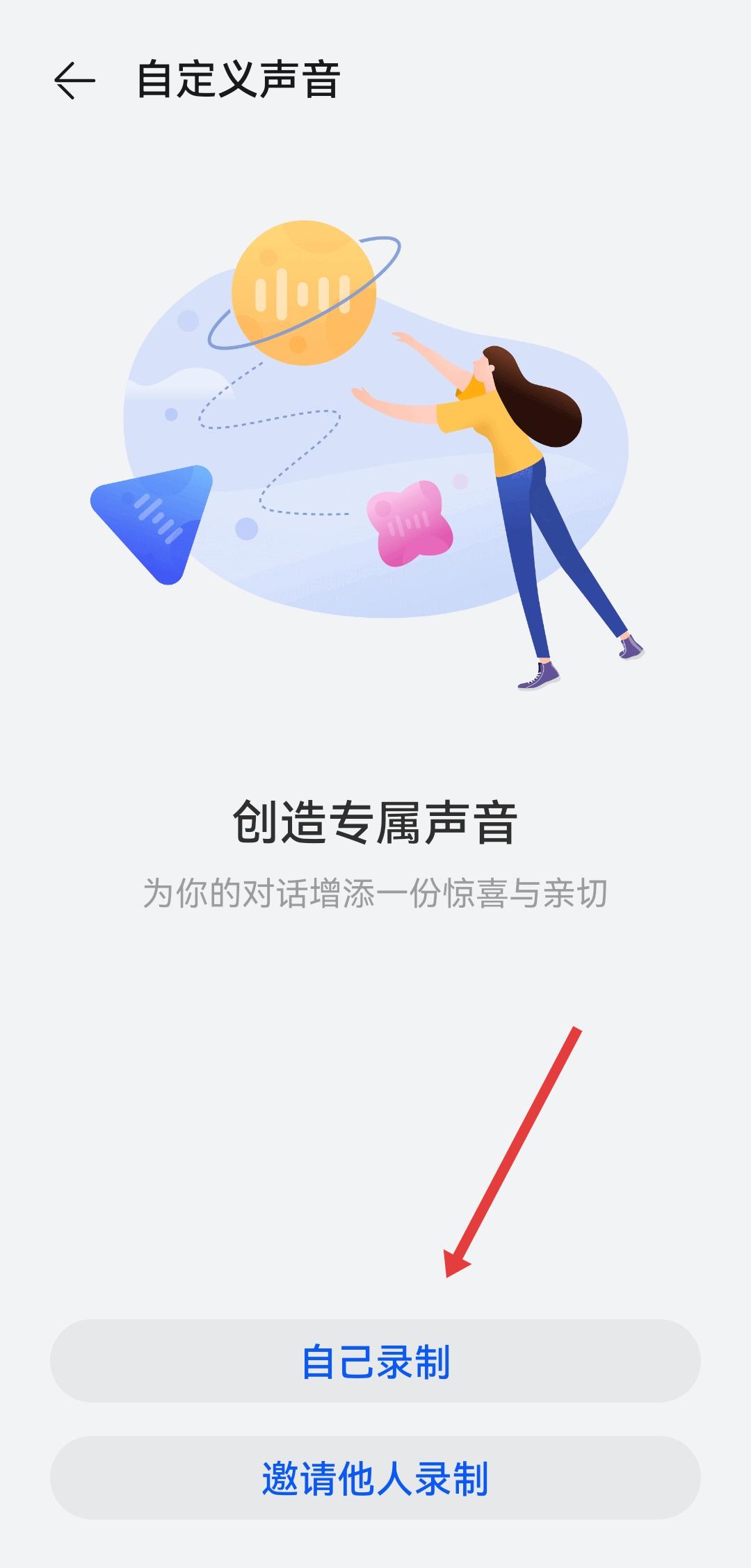 3、在自定義聲音的頁面,點擊自己錄制的選項,選擇自行錄制專屬聲音。