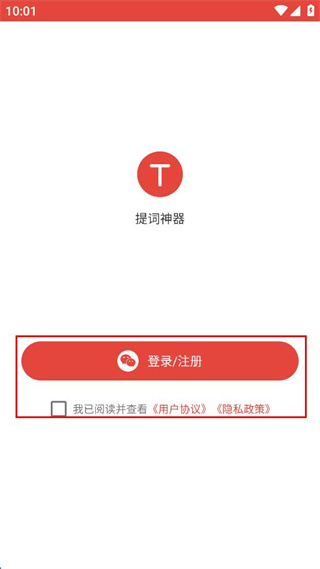 3、勾選用戶協(xié)議和隱私政策,點擊“登錄/注冊”按鈕完成登錄。