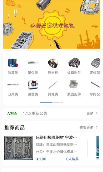 中模云模具商城是用來(lái)購(gòu)買各種工業(yè)機(jī)械模具相關(guān)商品的手機(jī)app,在這里能夠讓用戶找到超多的工業(yè)機(jī)械和材料,模具鋼、機(jī)械鉆頭、頂針、刀具、量?jī)x、油液材料等等等等,還有非常多的正規(guī)廠家入駐,用戶能夠直接在這里進(jìn)入廠商店鋪進(jìn)行購(gòu)買,非常的實(shí)用。