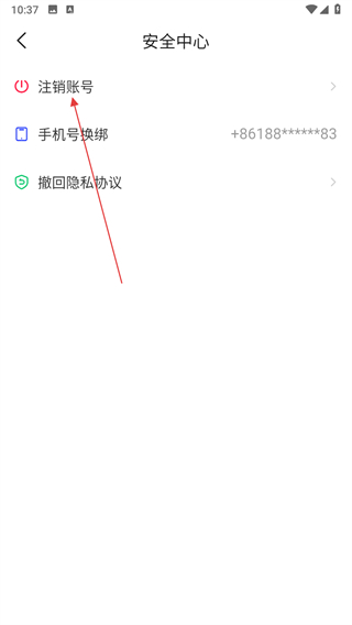 3、在安全中心頁面,點(diǎn)擊注銷賬號選項(xiàng),進(jìn)入注銷須知界面。