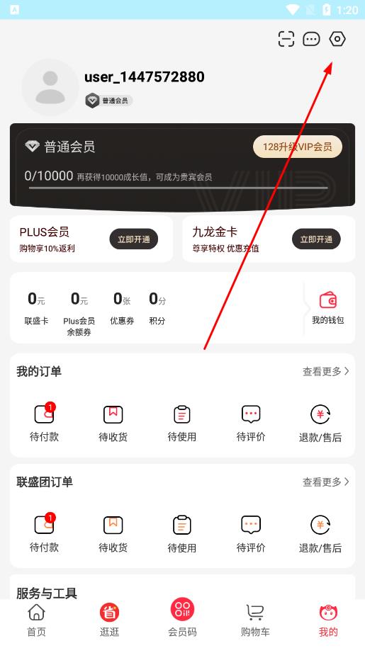 1、打開聯(lián)盛生活A(yù)pp,進(jìn)入我的,在個(gè)人中心頁(yè)面右上角,點(diǎn)擊設(shè)置圖標(biāo)。