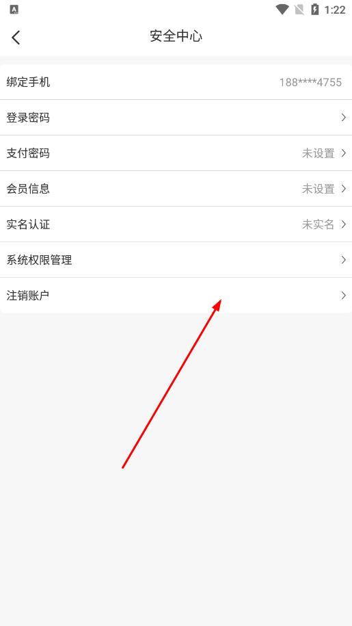 3、在設(shè)置頁(yè)面中,找到并點(diǎn)擊安全中心選項(xiàng),點(diǎn)擊注銷賬戶。