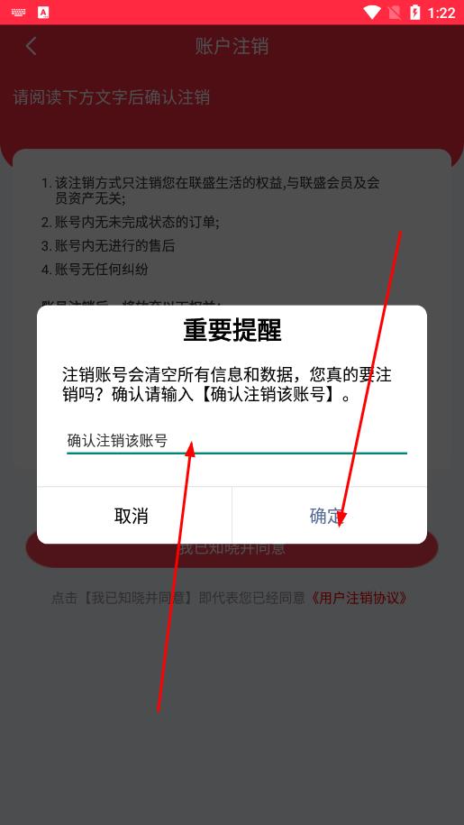 5、在彈出的重要提醒窗口中,輸入確認(rèn)注銷該賬號(hào),點(diǎn)擊確定,即可完成賬號(hào)注銷操作。