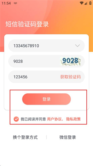 4、填寫收到的短信驗(yàn)證碼,勾選同意相關(guān)協(xié)議后點(diǎn)擊登錄按鈕完成操作。