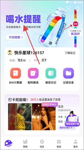 1、打開BetterWe星球App的首頁(yè),點(diǎn)擊“開啟提醒”區(qū)域,進(jìn)入彩虹杯相關(guān)頁(yè)面。