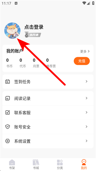 1、打開熱讀小說,點擊右下角我的,進入個人功能頁面。