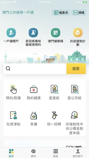 澳門公共服務(wù)一戶通安卓版是澳門政府推出的公共服務(wù)手機(jī)軟件,軟件內(nèi)含有詳細(xì)的行政手續(xù)指南,可以幫助用戶快速上手,可以在線進(jìn)行預(yù)約取號(hào),辦理業(yè)務(wù)更方便,支持進(jìn)行社保津貼的申請(qǐng),可以在手機(jī)上查看進(jìn)度,歡迎有需要的朋友下載使用!
