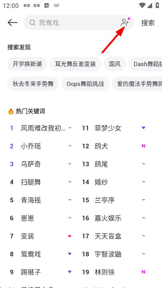 2、在搜索界面,點(diǎn)擊搜索框右側(cè)的添加好友圖標(biāo)。