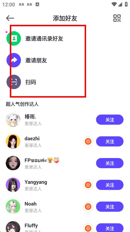 3、在添加好友界面,可以選擇邀請通訊錄好友、邀請朋友或掃碼的方式來添加好友。