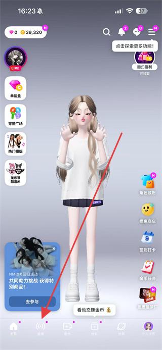 1、打開崽崽Zepeto APP,點(diǎn)擊底部導(dǎo)航欄中的直播圖標(biāo),進(jìn)入直播界面。