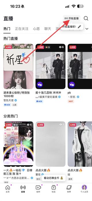 2、在直播界面右上角,點(diǎn)擊開始直播按鈕。