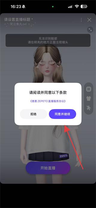 4、彈出崽崽ZEPEO直播服務(wù)協(xié)議提示框,點(diǎn)擊同意并繼續(xù),即可開始直播。