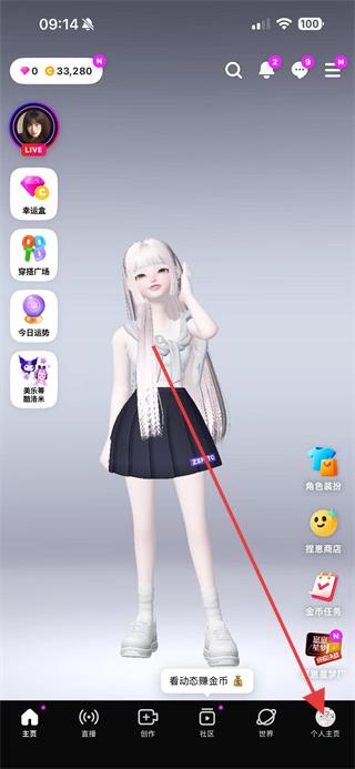 1、打開崽崽ZEPETO應(yīng)用,點(diǎn)擊底部導(dǎo)航欄最右側(cè)的個(gè)人主頁圖標(biāo)。