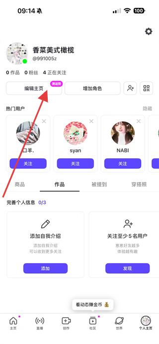 2、在個(gè)人主頁頁面,點(diǎn)擊編輯主頁按鈕。