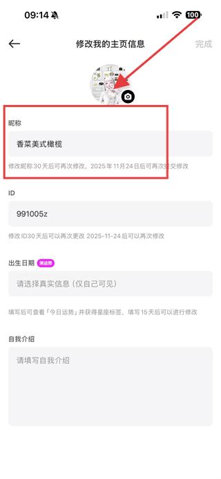 3、進(jìn)入修改我的主頁信息頁面后,點(diǎn)擊昵稱輸入框,輸入新的名字。