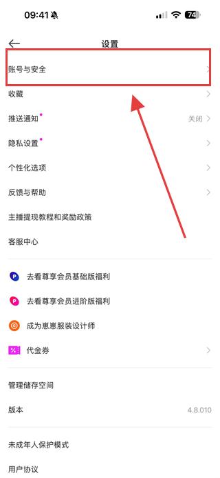 2、在設(shè)置頁面中找到賬號(hào)與安全選項(xiàng)并點(diǎn)擊,進(jìn)入賬號(hào)與安全相關(guān)功能頁面。