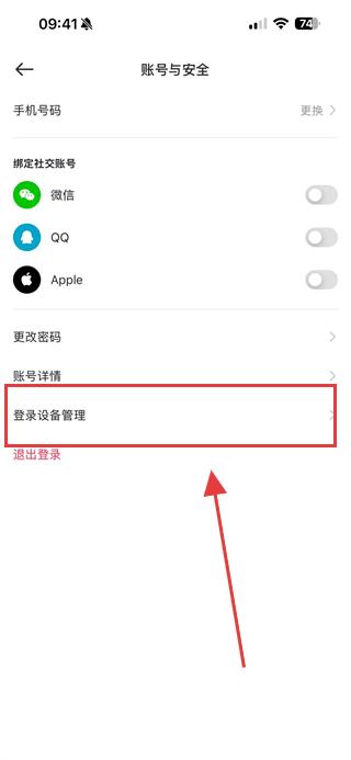 3、在賬號(hào)與安全頁面中找到登錄設(shè)備管理選項(xiàng)并點(diǎn)擊,進(jìn)入登錄設(shè)備管理頁面。