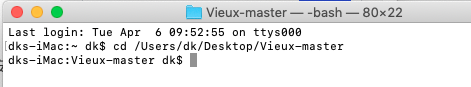 1,終端輸入: cd /Users/dk/Desktop/Vieux-master(終端輸入cd +空格,把vieux文件夾拖進(jìn)去)