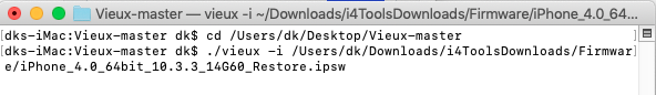 ./vieux -i /Users/dk/Downloads/i4ToolsDownloads/Firmware/iPhone_4.0_64bit_10.3.3_14G60_Restore.ipsw