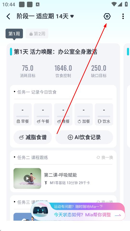 2、在計劃詳情頁面,點擊右上角的設(shè)置圖標(biāo)。