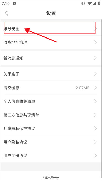 3、緊接著,點擊賬號安全,會再次跳轉頁面;