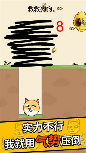救救狗狗吧,只要畫上一條線就能抵御蜜蜂攻擊!一個玩起來超級魔性的燒腦闖關(guān)類型的游戲,去關(guān)卡里面手繪一些線條出來保護一個魔性的狗頭不被傷害到,每一個關(guān)卡里面這個狗頭面臨的危險都是不一樣的。