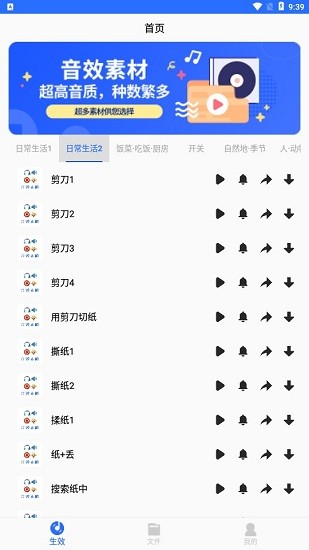 2、海量音效,數(shù)據(jù)豐富,音效素材之家app中導(dǎo)入了非常豐富的各種優(yōu)質(zhì)音效數(shù)據(jù)內(nèi)容,用戶可以自由的來使用各種不同類型的音效內(nèi)容,感受獨(dú)特的逼真效果;