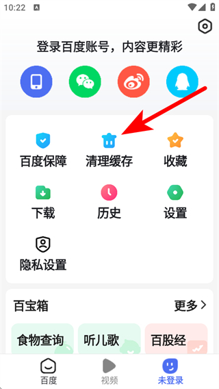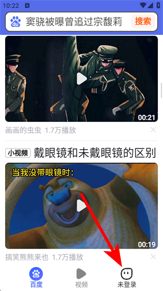 1、打開百度APP后,需要點(diǎn)擊底部未登錄,進(jìn)入個人的頁面。