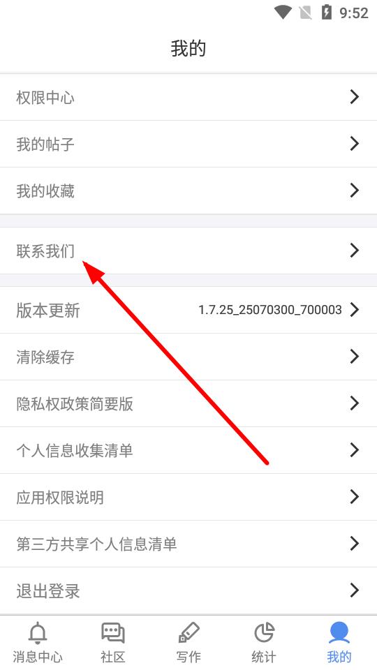 2、在我的頁面中,找到并點(diǎn)擊聯(lián)系我們選項(xiàng)。