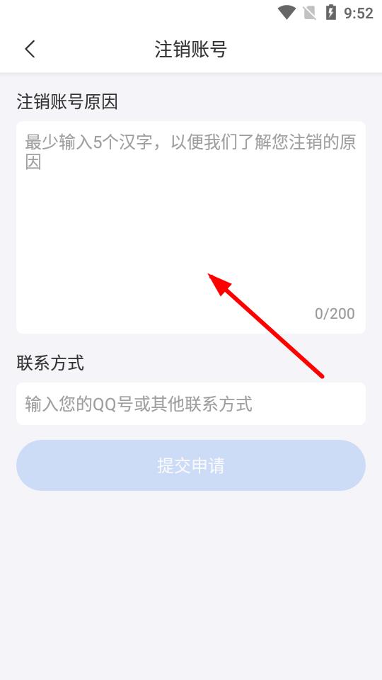 4、在注銷賬號(hào)頁面,按要求輸入注銷賬號(hào)原因最后點(diǎn)擊提交申請(qǐng)來完成賬號(hào)注銷。