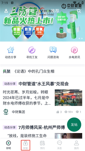 1、在這里觀看資訊可以賺取現(xiàn)金,想要知道這個平臺之上所有的錢怎么提現(xiàn),可以點擊首頁下方的【財富】,這里是所有在應(yīng)用中所積累的財富;