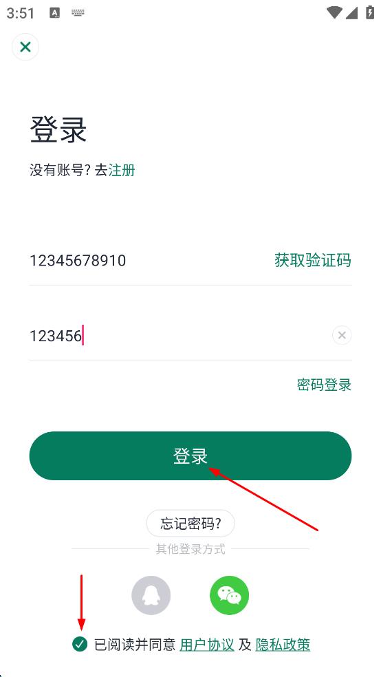 4、勾選“已閱讀并同意用戶協(xié)議及隱私政策”,然后點擊“登錄”按鈕。
