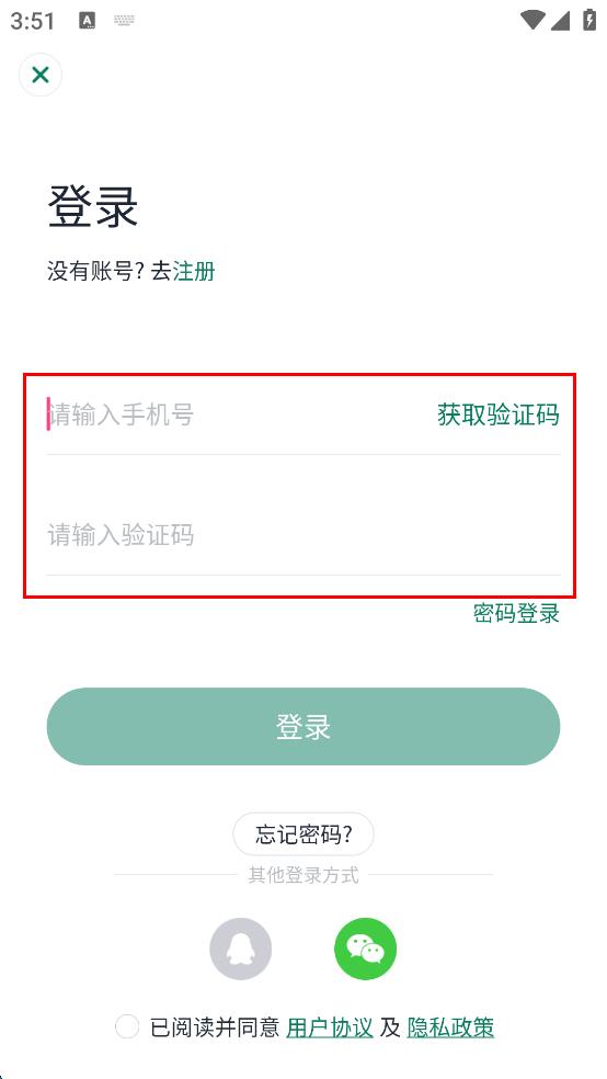 3、在登錄頁面輸入手機(jī)號,點擊“獲取驗證碼”,再在驗證碼輸入框中輸入驗證碼。