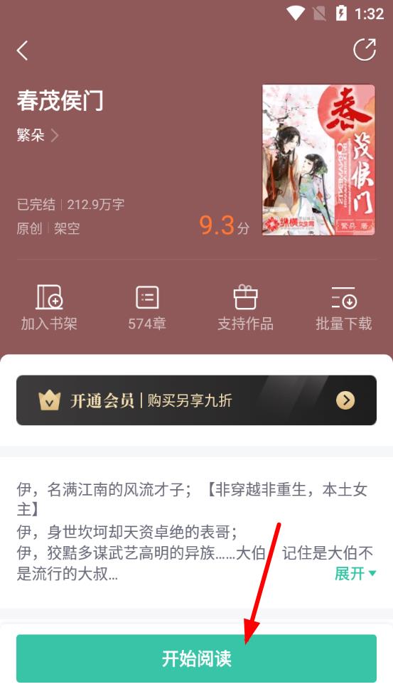 2、進(jìn)入書籍詳情頁后,點擊開始閱讀按鈕,進(jìn)入書籍的閱讀界面。