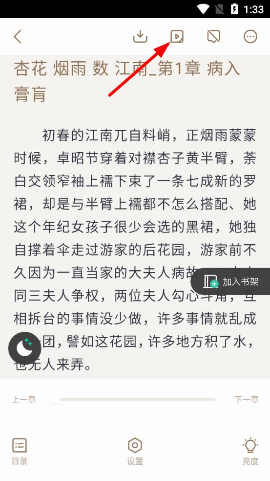 3、在閱讀界面中,點擊頂部的朗讀圖標(biāo)類似播放的標(biāo)志,即可設(shè)置并開啟朗讀功能。