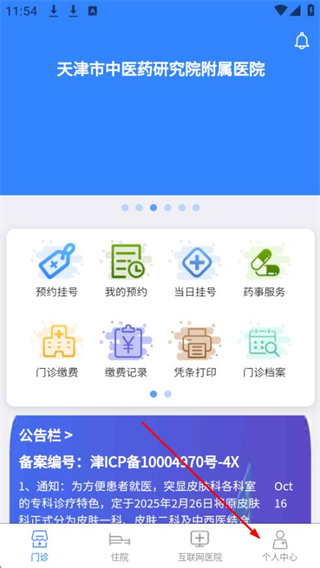 1、打開智醫(yī)大眾版app,點(diǎn)擊底部導(dǎo)航欄中的個人中心選項(xiàng)。