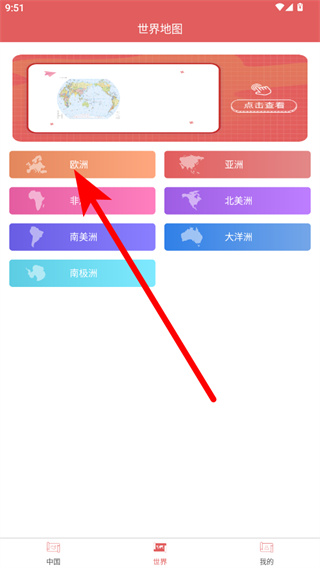 2、在世界地圖頁(yè)面,點(diǎn)擊歐洲選項(xiàng),進(jìn)入歐洲地圖頁(yè)面。