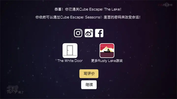通關(guān)畫面:提示依然可以通過Cube Escape:Seasons!里面的密碼來改變命運(yùn)!