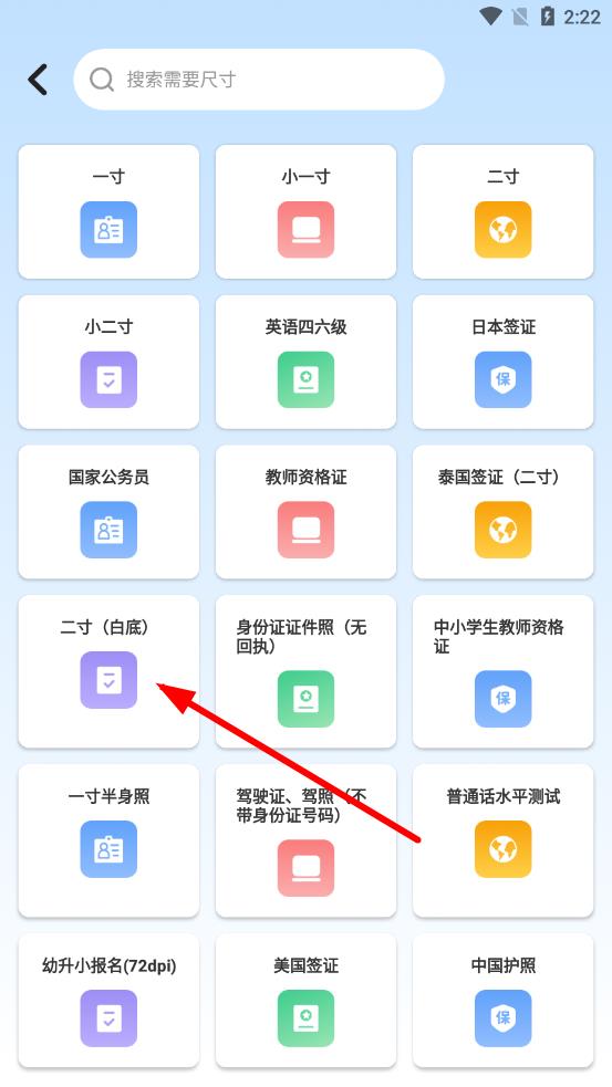2、在照片規(guī)格選擇頁(yè)面里,找到并點(diǎn)擊二白底或其他所需白底規(guī)格選項(xiàng)。