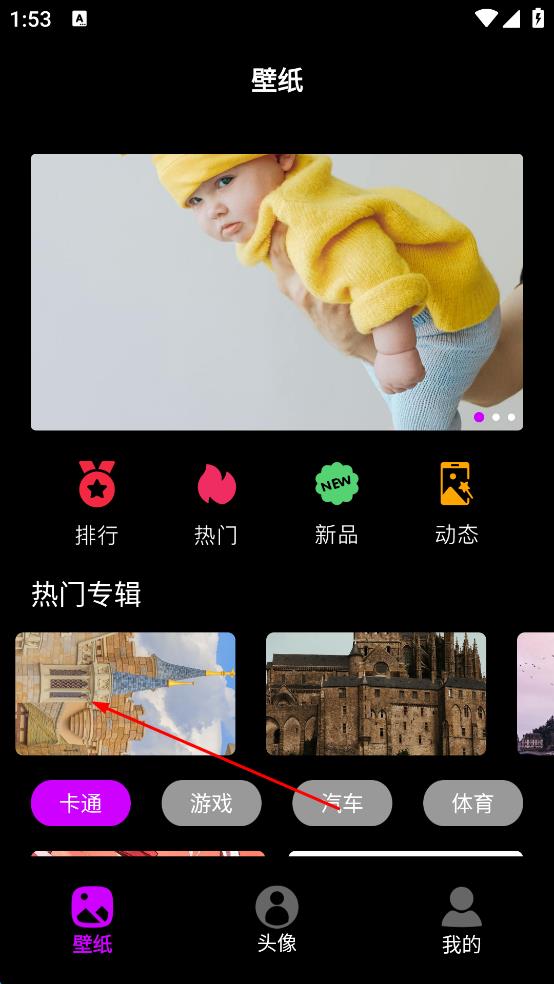 2、在“壁紙”頁面,瀏覽“熱門專輯”等板塊,找到心儀的城堡類壁紙專輯,點擊進入該專輯詳情。