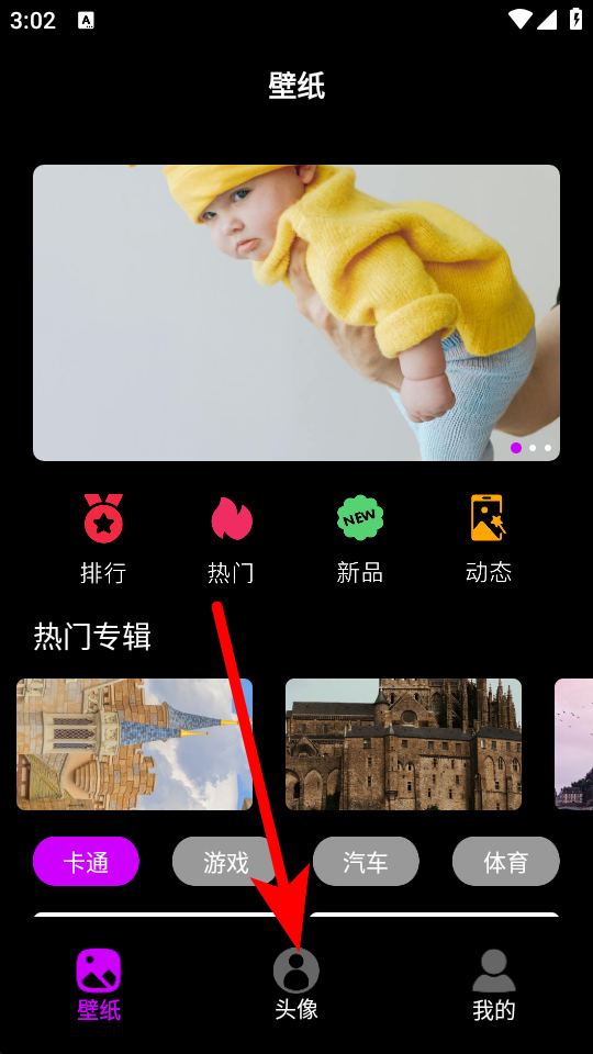 1、在壁紙應(yīng)用首頁,點擊頭像選項,進入頭像頁面。