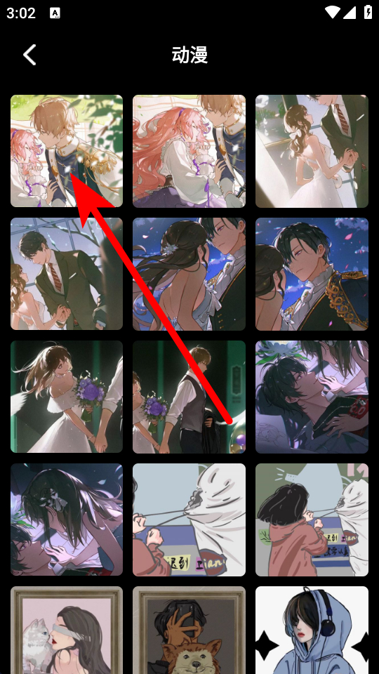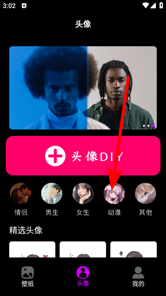 2、在頭像頁面,選擇頭像分類,如動漫,進入對應(yīng)分類頭像列表。
