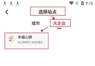 2.在“選擇站點(diǎn)”里點(diǎn)擊“大企業(yè)”的“幸福山鋼”即可