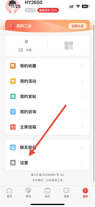 1、打開齊魯工惠app,點(diǎn)擊底部導(dǎo)航欄中的我的選項(xiàng)。
