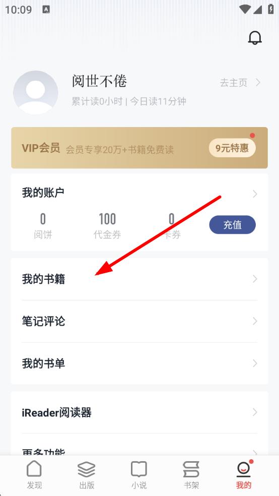 2、在個人中心界面里,找到并點擊我的書籍選項進入書籍列表頁。